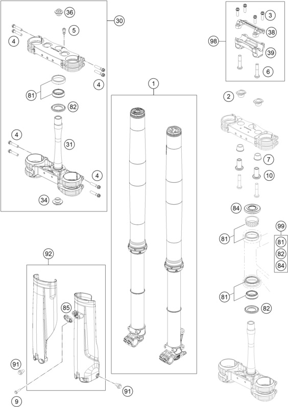 FRONT FORK, TRIPLE CLAMP