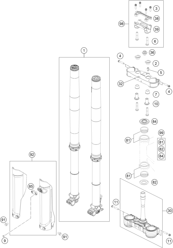 FRONT FORK, TRIPLE CLAMP