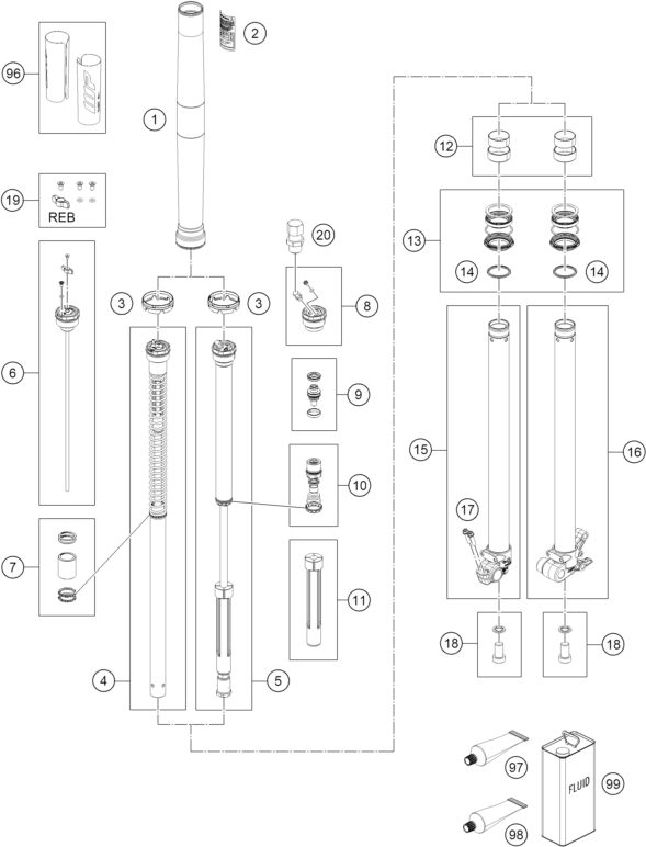 FRONT FORK DISASSEMBLED